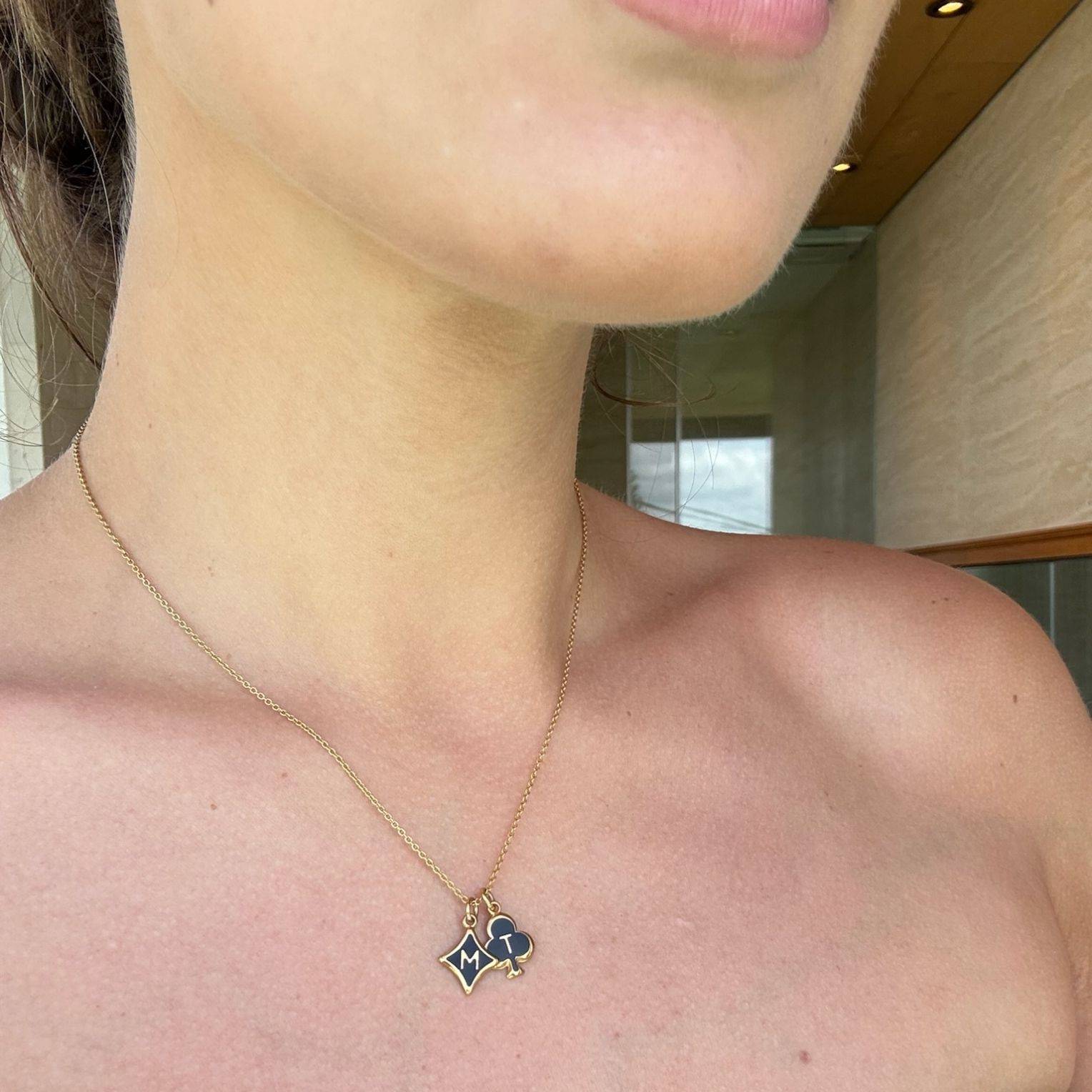 Midnight Enamel Willow Card Initials Necklace - Silver